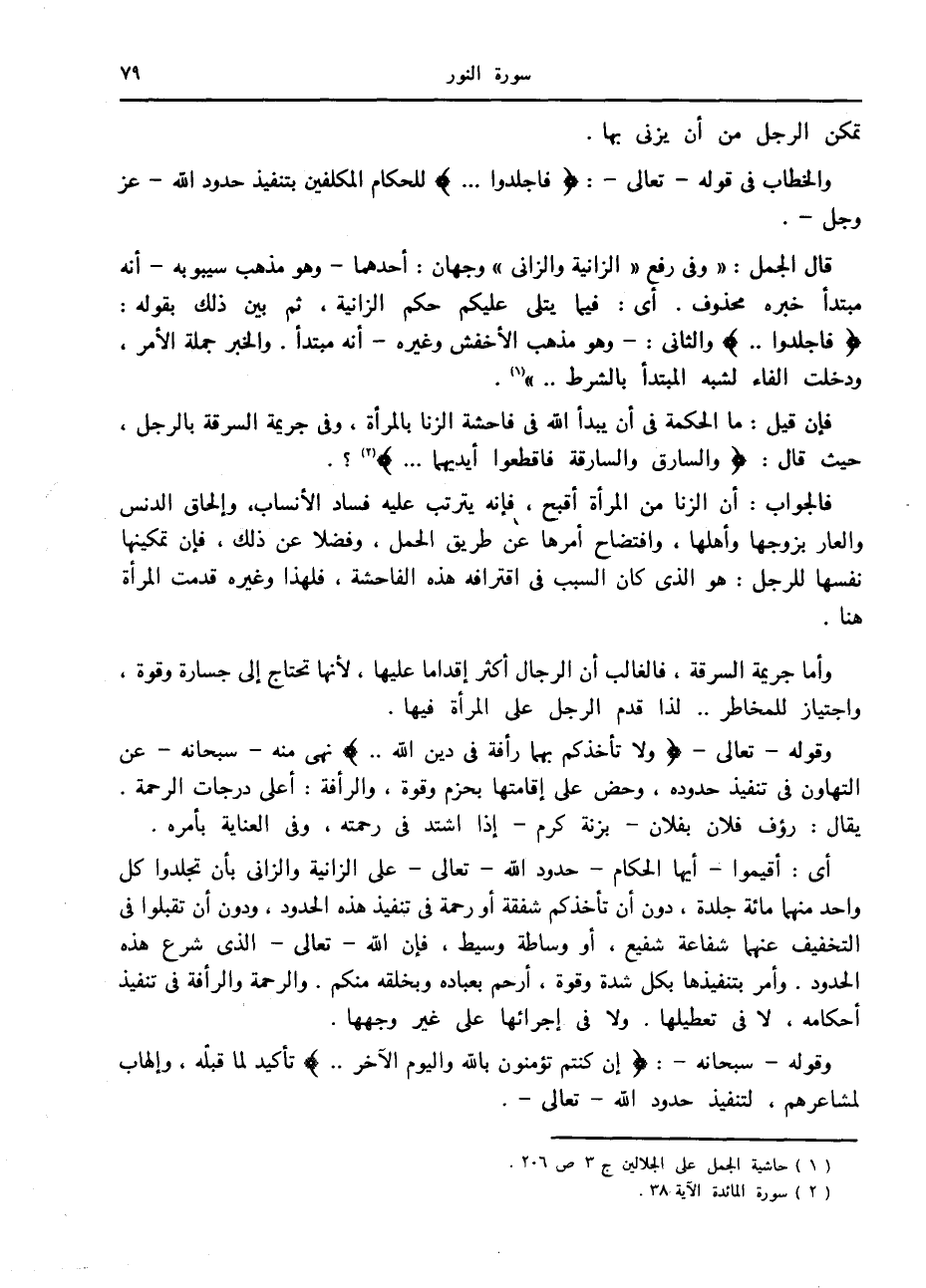 (1) حاشية الجمل على الجلالين ج 3 ص 206.