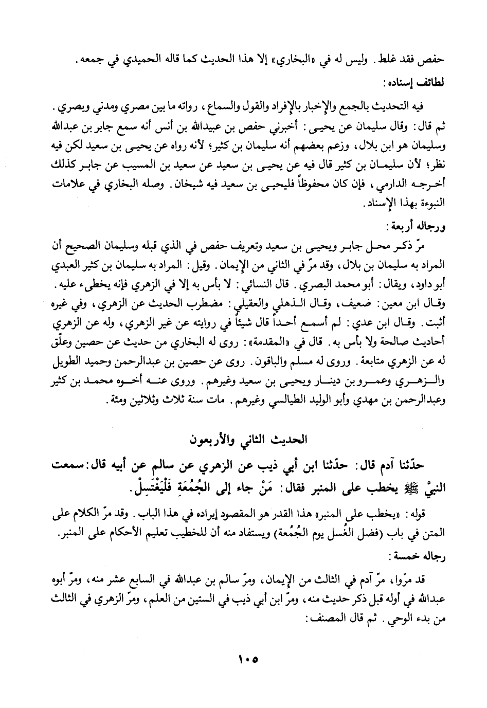 مرَّ ذكر محل جابر ويحيى بن سعيد وتعريف حفص في الذي قبله وسليمان الصحيح أن المراد به سليمان بن بلال، وقد مرَّ في الثاني من الإيمان. وقيل: المراد به سليمان بن كثير العبدي أبو داود، ويقال: أبو محمد البصري. قال النسائي: لا بأس به إلا في الزهري فإنه يخطىء عليه. وقال ابن معين: ضعيف، وقال الذهلي والعقيلي: مضطرب الحديث عن الزهري، وفي غيره أثبت. وقال ابن عدي: لم أسمع أحدًا قال شيئًا في روايته عن غير الزهري، وله عن الزهري أحاديث صالحة ولا بأس به. قال في "المقدمة": روى له البخاري من حديث عن حصين وعلّق له عن الزهري متابعة. وروى له مسلم والباقون. روى عن حصين بن عبد الرحمن وحميد الطويل والزهري وعمرو بن دينار ويحيى بن سعيد وغيرهم. وروى عنه أخوه محمد بن كثير وعبد الرحمن بن مهدي وأبو الوليد الطيالسي وغيرهم. مات سنة ثلاث وثلاثين ومئة.