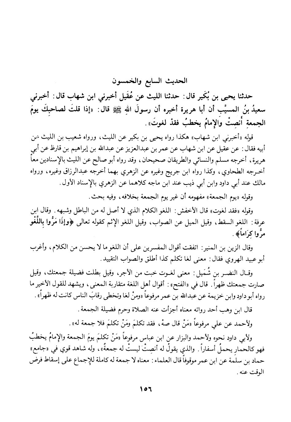 حَدَّثَنَا يَحْيَى بْنُ بُكَيْرٍ قَالَ: حَدَّثَنَا اللَّيْثُ عَنْ عُقَيْلٍ أَخْبَرَنِي ابْنِ شِهَابٍ قَالَ: أَخْبَرَنِي سَعِيدُ بْنُ الْمُسَيَّبِ أَنَّ أَبَا هُرَيْرَةَ أَخْبَرَهُ أَنَّ رَسُولَ اللَّهِ -صلى الله عليه وسلم- قَالَ: "إِذَا قُلْتَ لِصَاحِبِكَ يَوْمَ الْجُمُعَةِ أَنْصِتْ. وَالإِمَامُ يَخْطُبُ فَقَدْ لَغَوْتَ".