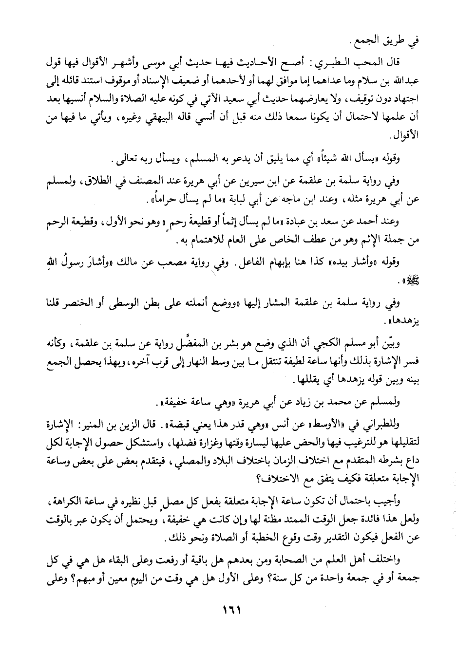 قال المحب الطبري: أصح الأحاديث فيها حديث أبي موسى وأشهر الأقوال فيها قول عبد الله بن سلام وما عداهما إما موافق لهما أو لأحدهما أو ضعيف الإِسناد أو موقوف استند قائله إلى اجتهاد دون توقيف، ولا يعارضهما حديث أبي سعيد الآتي في كونه عليه الصلاة والسلام أنسيها بعد أن علمها لاحتمال أن يكونا سمعا ذلك منه قبل أن أنسي قاله البيهقي وغيره، ويأتي ما فيها من الأقوال.