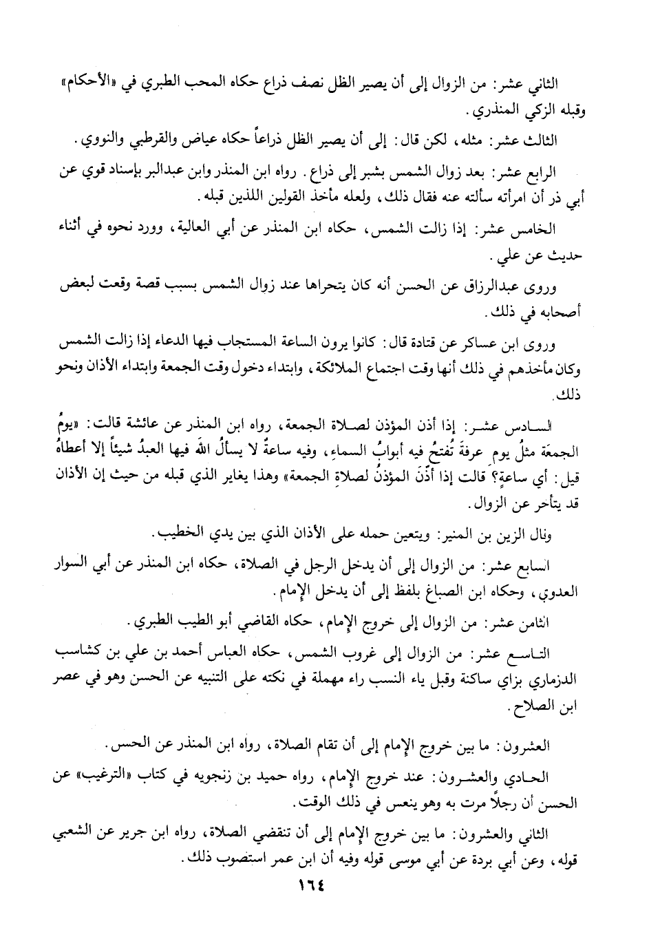 التاسع عشر: من الزوال إلى غروب الشمس، حكاه العباس أحمد بن علي بن كشاسب الدزماري بزاي ساكنة وقبل ياء النسب راء مهملة في نكته على التنبيه عن الحسن وهو في عصر ابن الصلاح.