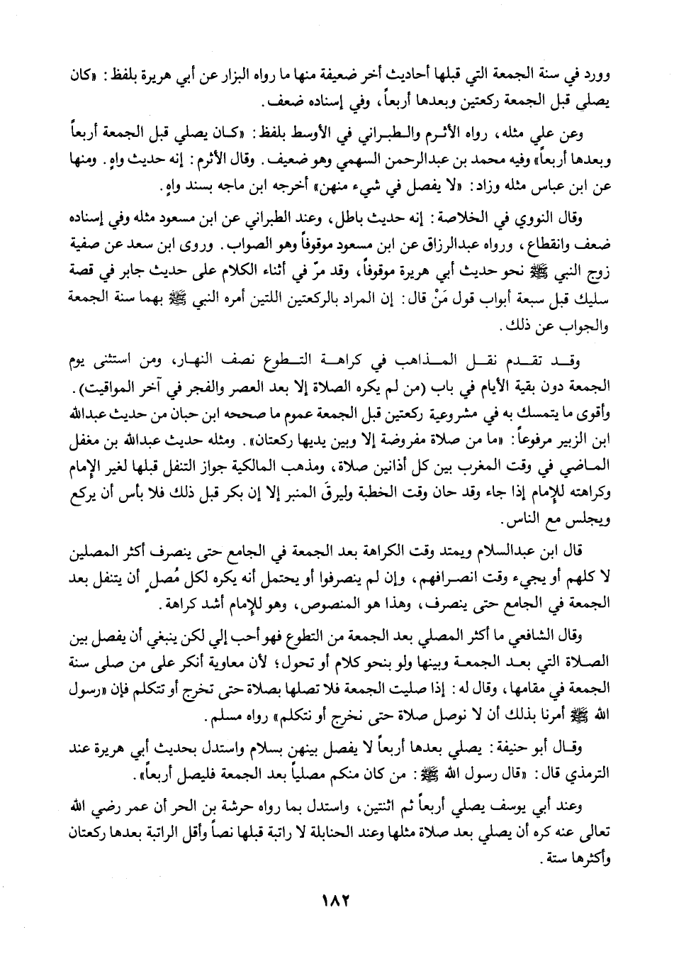 وقد تقدم نقل المذاهب في كراهة التطوع نصف النهار، ومن استثنى يوم الجمعة دون بقية الأيام في باب (من لم يكره الصلاة إلا بعد العصر والفجر في آخر المواقيت). وأقوى ما يتمسك به في مشروعية ركعتين قبل الجمعة عموم ما صححه ابن حبان من حديث عبد الله ابن الزبير مرفوعًا: "ما من صلاة مفروضة إلا وبين يديها ركعتان". ومثله حديث عبد الله بن مغفل الماضي في وقت المغرب بين كل أذانين صلاة، ومذهب المالكية جواز التنفل قبلها لغير الإِمام وكراهته للإمام إذا جاء وقد حان وقت الخطبة وليرقَ المنبر إلا إن بكر قبل ذلك فلا بأس أن يركع ويجلس مع الناس.