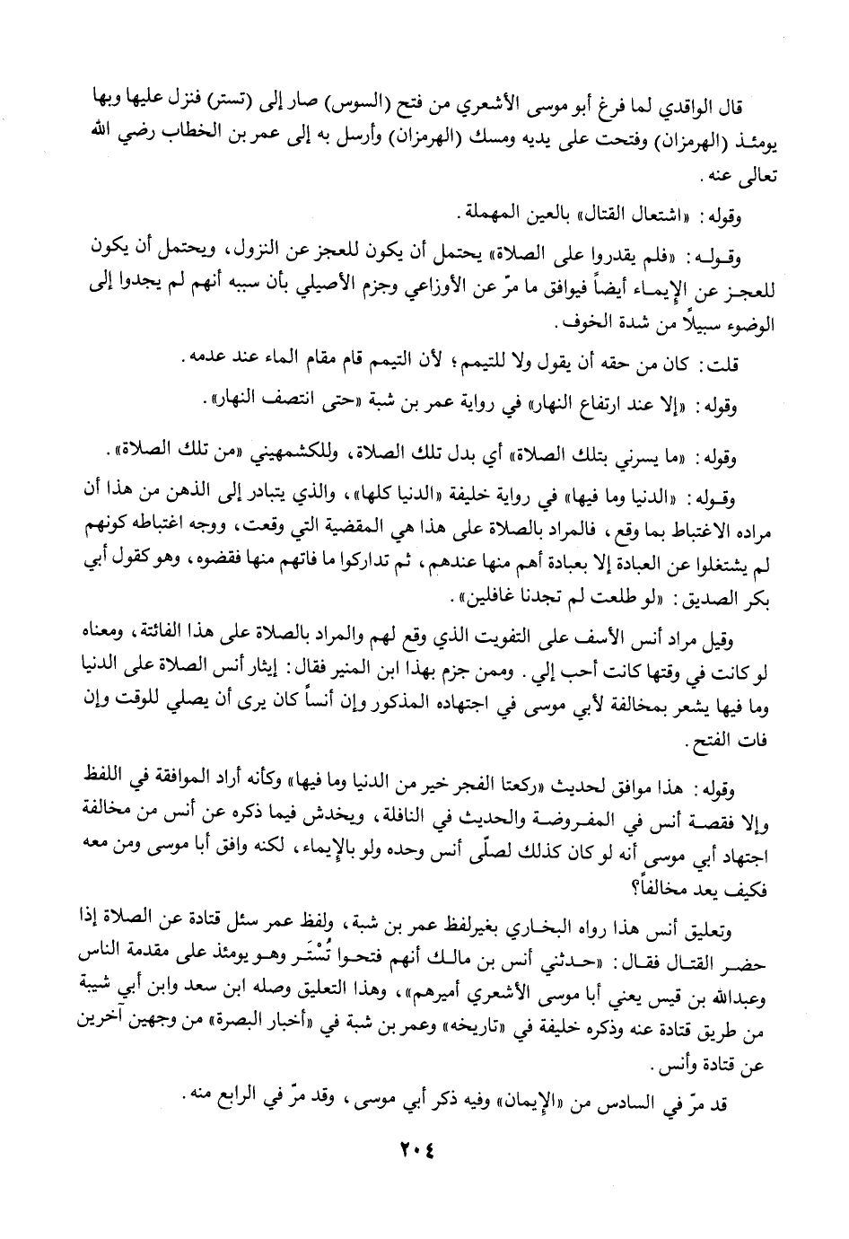 وتعليق أنس هذا رواه البخاري بغير لفظ عمر بن شبة، ولفظ عمر سئل قتادة عن الصلاة إذا حضر القتال فقال: "حدثني أنس بن مالك أنهم فتحوا تُسْتَر وهو يومئذ على مقدمة الناس وعبد الله بن قيس يعني أبا موسى الأشعري أميرهم"، وهذا التعليق وصله ابن سعد وابن أبي شيبة من طريق قتادة عنه وذكره خليفة في "تاريخه" وعمر بن شبة في "أخبار البصرة" من وجهين آخرين عن قتادة وأنس.
