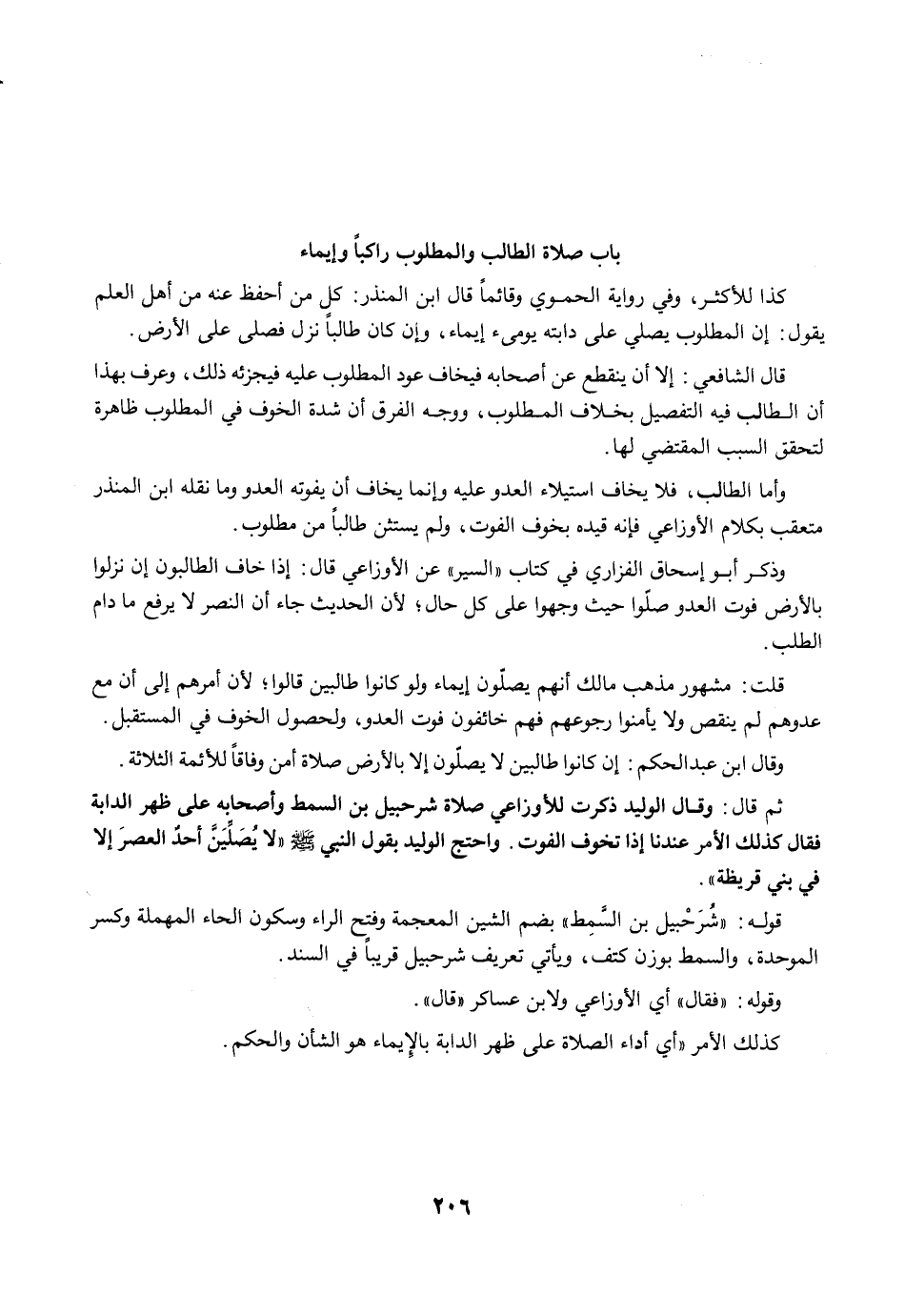 وذكر أبو إسحاق الفزاري في كتاب "السير" عن الأوزاعي قال: إذا خاف الطالبون إن نزلوا بالأرض فوت العدو صلّوا حيث وجهوا على كل حال؛ لأن الحديث جاء أن النصر لا يرفع ما دام الطلب.