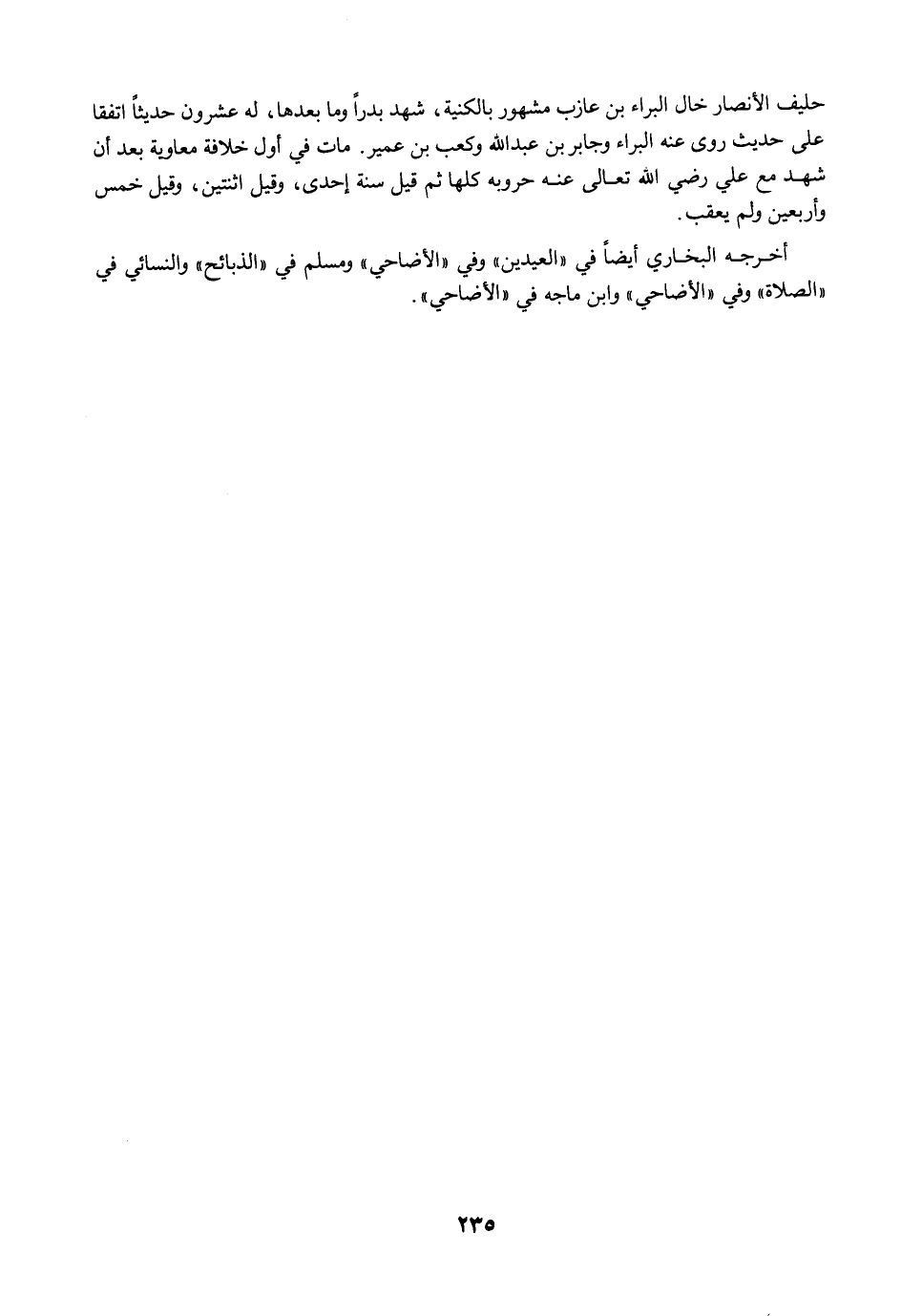 أخرجه البخاري أيضًا في "العيدين" وفي "الأضاحي" ومسلم في "الذبائح" والنسائي في "الصلاة" وفي "الأضاحي" وابن ماجه في "الأضاحي".