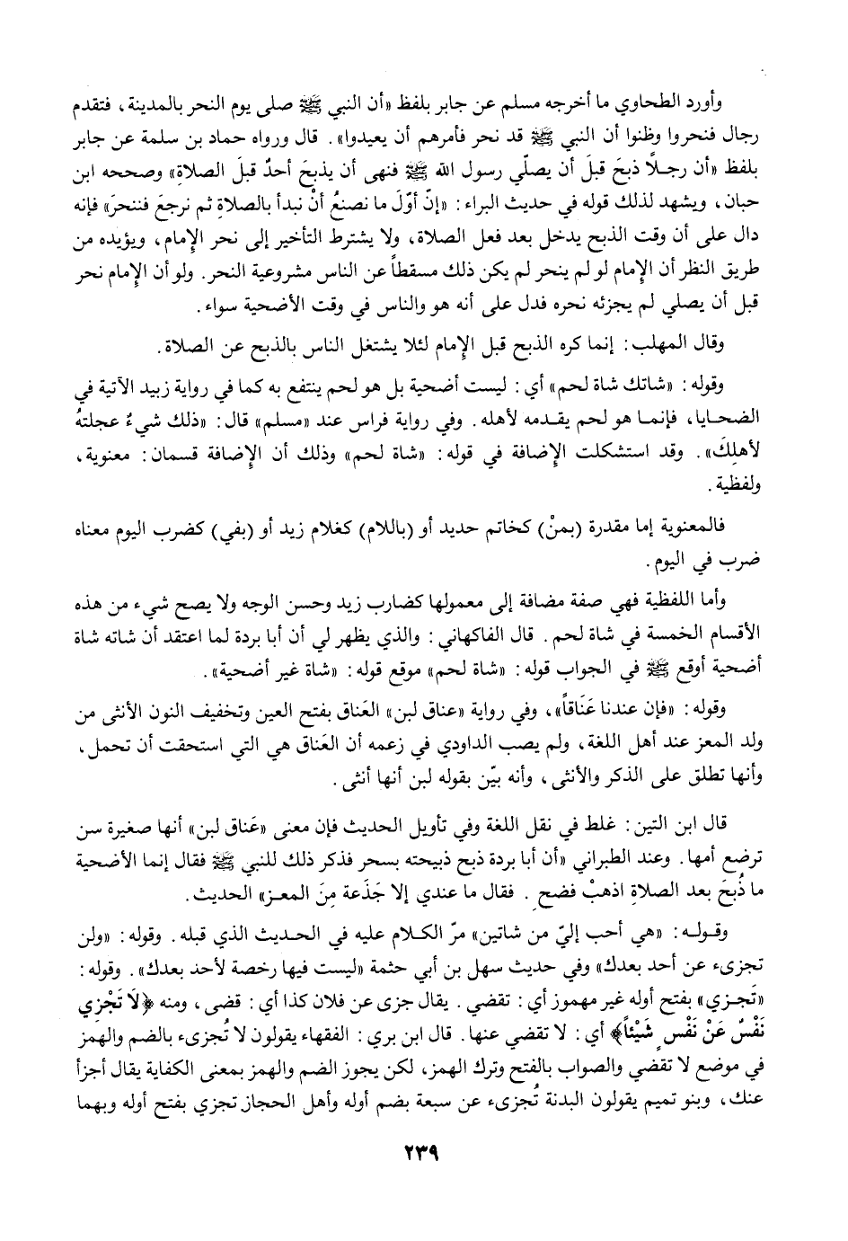 قال ابن التين: غلط في نقل اللغة وفي تأويل الحديث فإن معنى "عَناق لبن" أنها صغيرة سن ترضع أمها. وعند الطبراني "أن أبا بردة ذبح ذبيحته بسحر فذكر ذلك للنبي -صلى الله عليه وسلم- فقال إنما الأضحية ما ذُبحَ بعد الصلاةِ اذهبْ فضحِ. فقال ما عندي إلا جَذَعة مِنَ المعز" الحديث.