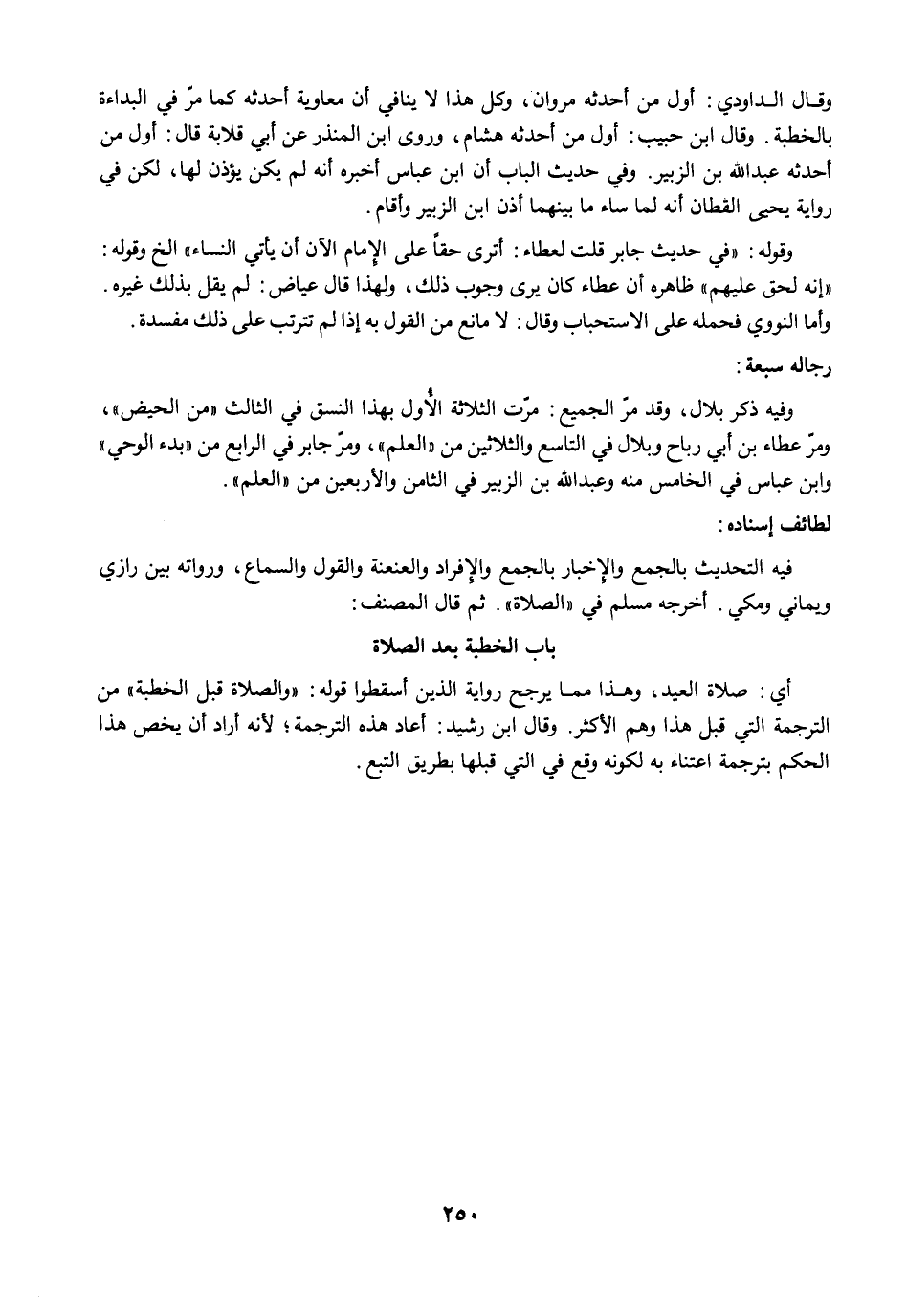 وفيه ذكر بلال، وقد مرّ الجميع: مرّت الثلاثة الأُول بهذا النسق في الثالث "من الحيض"، ومرَّ عطاء بن أبي رباح وبلال في التاسع والثلاثين من "العلم"، ومرّجابر في الرابع من "بدء الوحي" وابن عباس في الخامس منه وعبد الله بن الزبير في الثامن والأربعين من "العلم".