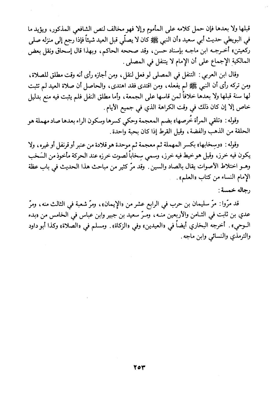 قد مرّوا: مرّ سليمان بن حرب في الرابع عشر من "الإيمان"، ومرّ شعبة في الثالث منه، ومرَّ عدي بن ثابت في الثامن والأربعين منه، ومرَّ سعيد بن جبير وابن عباس في الخامس من "بدء الوحي". أخرجه البخاري أيضًا في "العيدين" وفي "الزكاة". ومسلم في "الصلاة" وكذا أبو داود والترمذي والنسائي وابن ماجه.