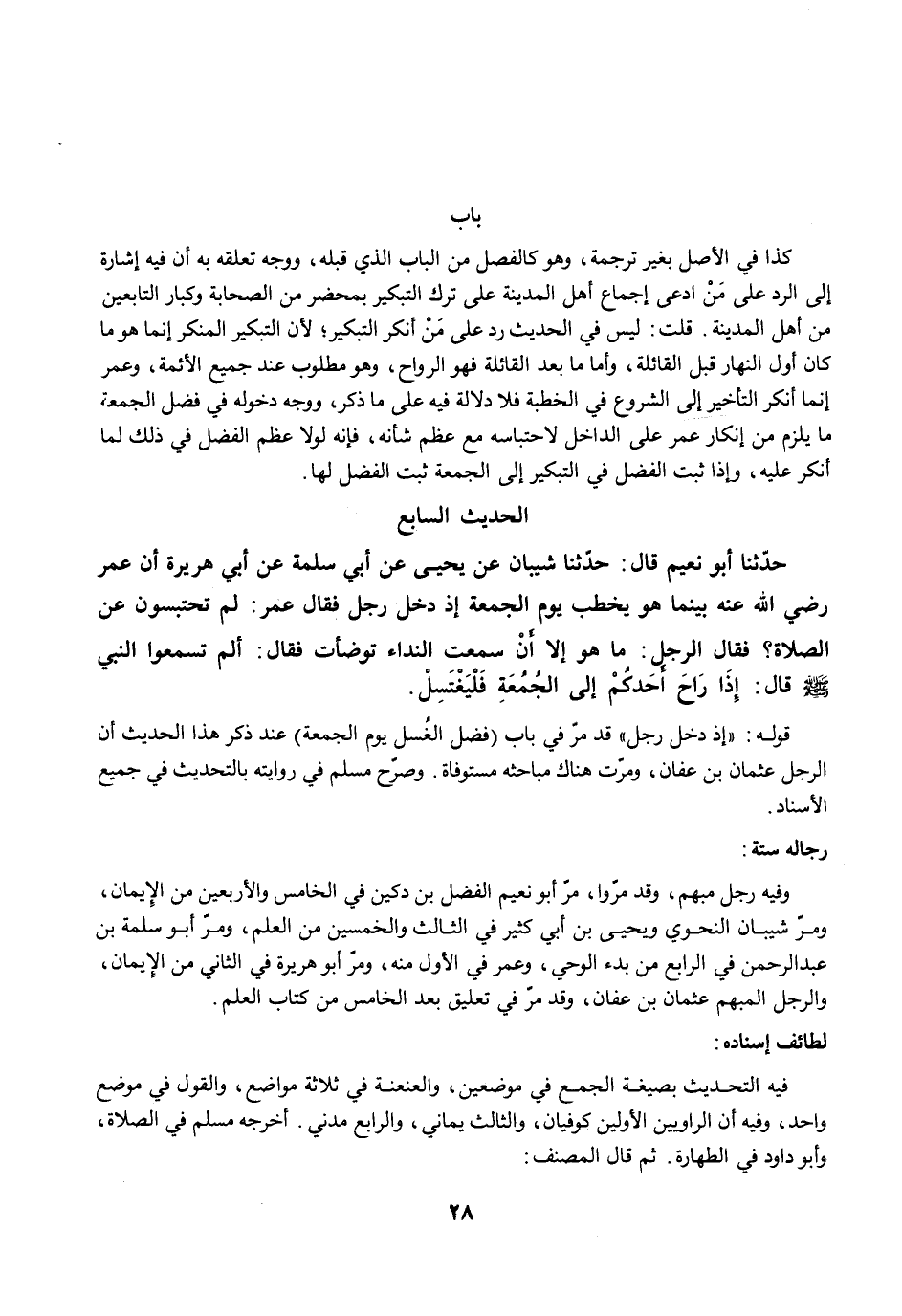 وفيه رجل مبهم، وقد مرّوا، مرّ أبو نعيم الفضل بن دكين في الخامس والأربعين من الإيمان، ومرّ شيبان النحوي ويحيى بن أبي كثير في الثالث والخمسين من العلم، ومرّ أبو سلمة بن عبد الرحمن في الرابع من بدء الوحي، وعمر في الأول منه، ومرّ أبو هريرة في الثاني من الإيمان، والرجل المبهم عثمان بن عفان، وقد مرّ في تعليق بعد الخامس من كتاب العلم.