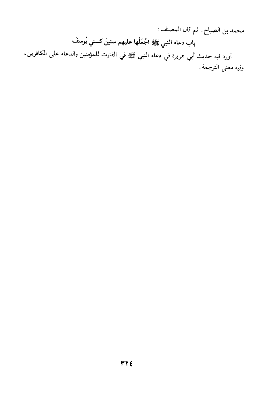 باب دعاء النبي -صلى الله عليه وسلم- اجْعَلْها عليهم سنينَ كسني يُوسفَ