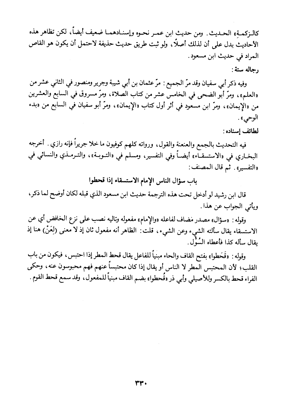 فيه التحديث بالجمع والعنعنة والقول، ورواته كلهم كوفيون ما خلا جريرًا فإنه رازي. أخرجه البخاري في "الاستسقاء" أيضًا وفي التفسير، ومسلم في "التوبة"، والترمذي والنسائي في "التفسير". ثم قال المصنف: