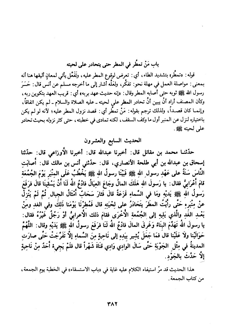 باب مَنْ تمطَّر في المطر حتى يتحادر على لحيته