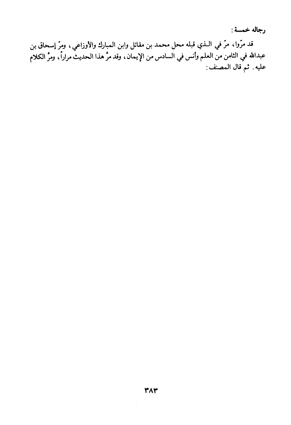 قد مرّوا، مرّ في الذي قبله محل محمد بن مقاتل وابن المبارك والأوزاعي، ومرّ إسحاق بن عبد الله في الثامن من العلم وأنس في السادس من الإيمان، وقد مرّ هذا الحديث مرارًا، ومرَّ الكلام عليه. ثم قال المصنف: