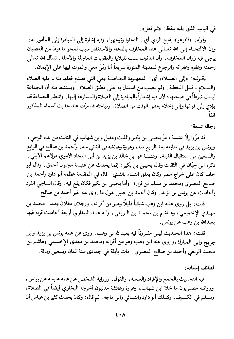 فيه التحديث بالجمع والإِفراد والعنعنة، والقول، ورواية الشخص عن عمه عنبسة عن يونس، ورواته مصريون ما خلا ابن شهاب، وعروة وعائشة مدنيون أخرجه البخاري أيضًا في الصلاة، ومسلم في الكسوف، وكذلك أبو داود والنسائي وابن ماجه. ثم قال: وكان يحدث كثير بن عباس أن