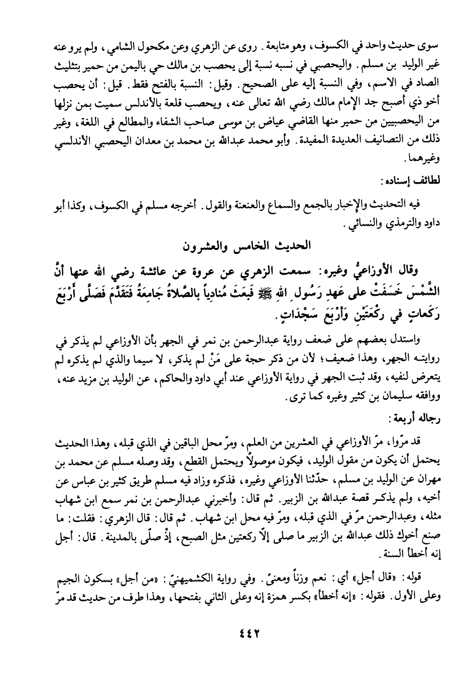 قد مرّوا، مرّ الأوزاعي في العشرين من العلم، ومرّ محل الباقين في الذي قبله، وهذا الحديث يحتمل أن يكون من مقول الوليد، فيكون موصولًا ويحتمل القطع، وقد وصله مسلم عن محمد بن مهران عن الوليد بن مسلم، حدّثنا الأوزاعي وغيره، فذكره وزاد فيه مسلم طريق كثير بن عباس عن أخيه، ولم يذكر قصة عبد الله بن الزبير. ثم قال: وأخبرني عبد الرحمن بن نمر سمع ابن شهاب مثله، وعبد الرحمن مرَّ في الذي قبله، ومرَّ فيه محل ابن شهاب. ثم قال: قال الزهري: فقلت: ما صنع أخوك ذلك عبد الله بن الزبير ما صلى إلاَّ ركعتين مثل الصبح، إذْ صلّى بالمدينة. قال: أجل إنه أخطأ السنة.