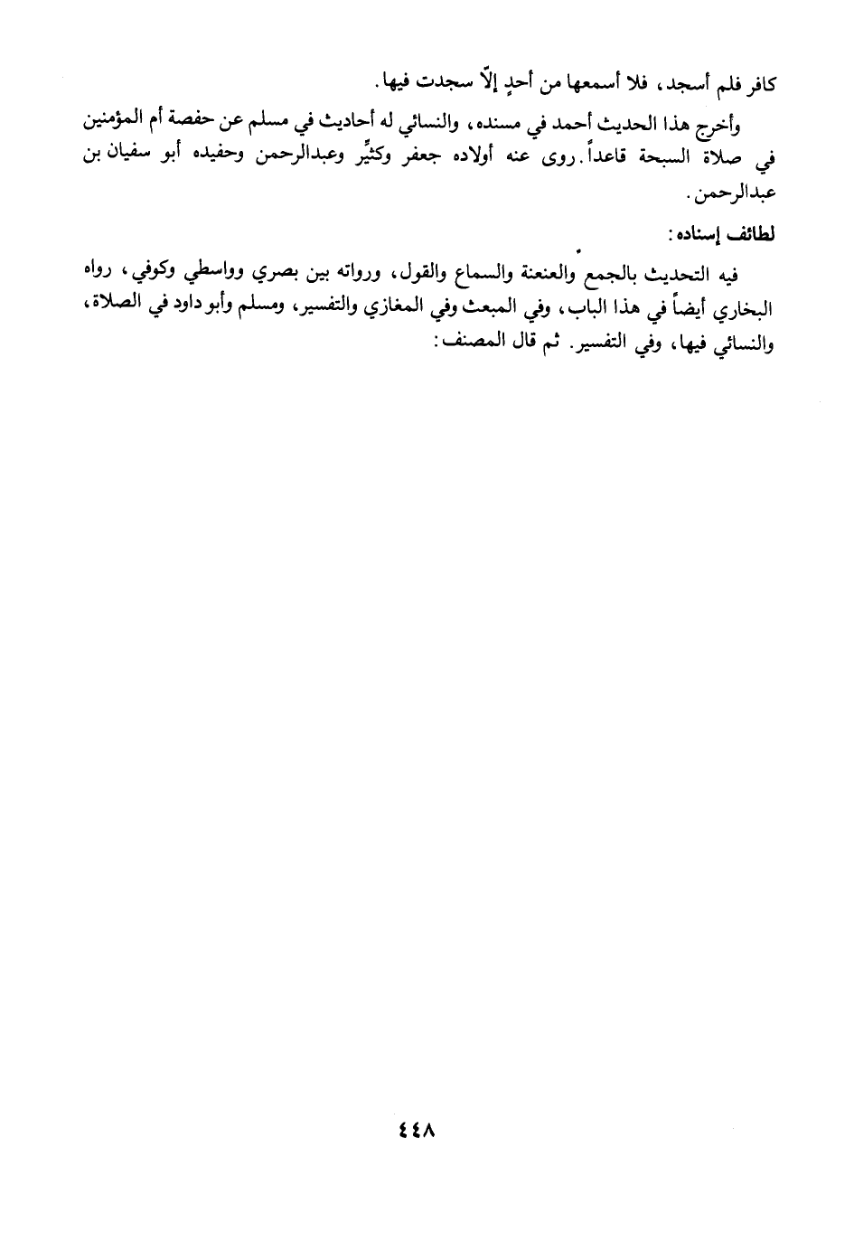 فيه التحديث بالجمع والعنعنة والسماع والقول، ورواته بين بصري وواسطي وكوفي، رواه البخاري أيضًا في هذا الباب، وفي المبعث وفي المغازي والتفسير، ومسلم وأبو داود في الصلاة، والنسائي فيها، وفي التفسير. ثم قال المصنف: