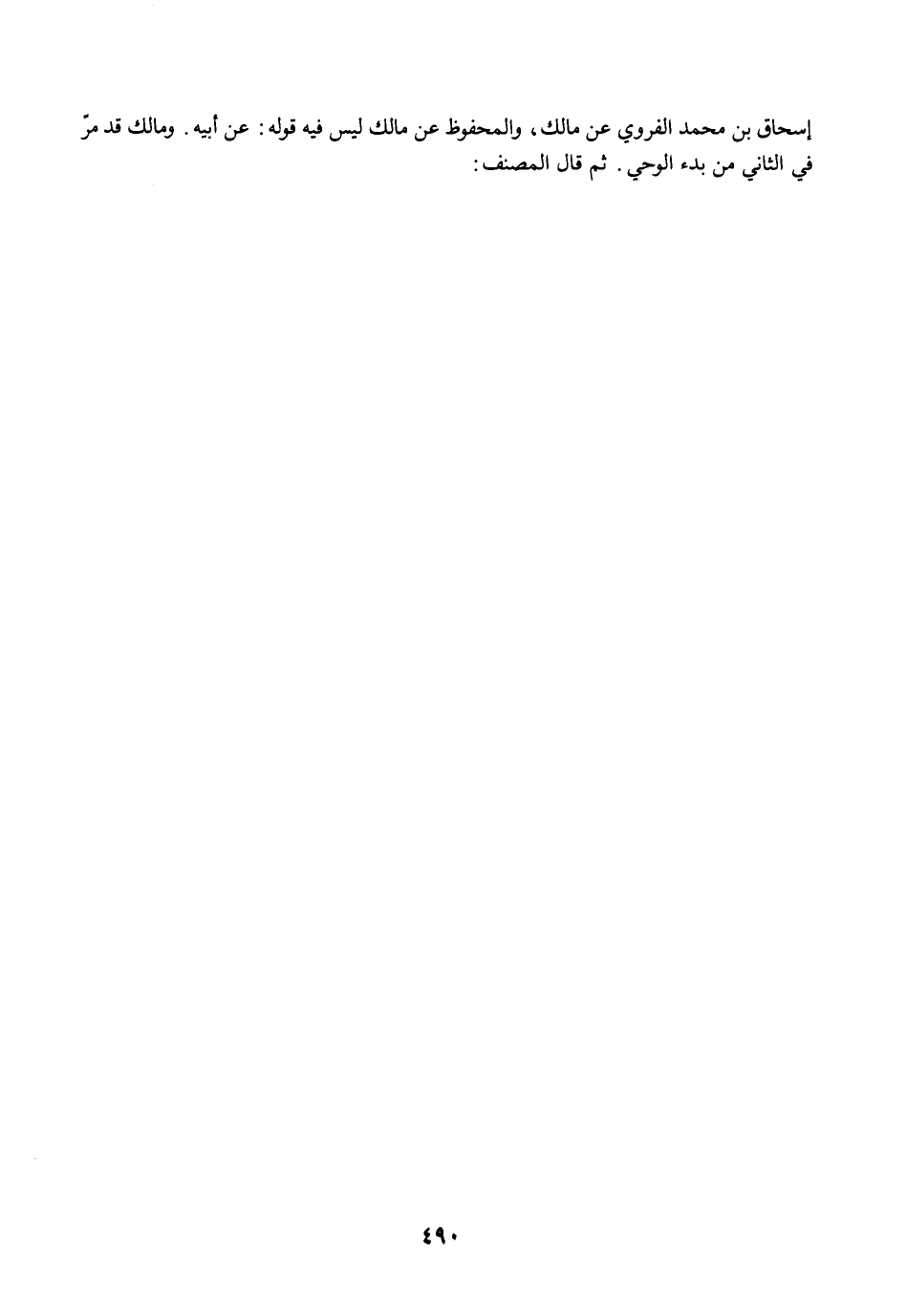 إسحاق بن محمد الفروي عن مالك، والمحفوظ عن مالك ليس فيه قوله: عن أبيه. ومالك قد مرّ في الثاني من بدء الوحي. ثم قال المصنف: