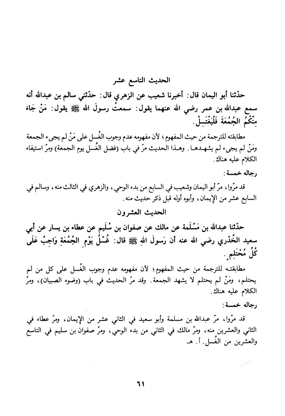 قد مرّوا، مرّ أبو اليمان وشعيب في السابع من بدء الوحي، والزهري في الثالث منه، وسالم في السابع عشر من الإِيمان، وأبوه أوله قبل ذكر حديث منه.