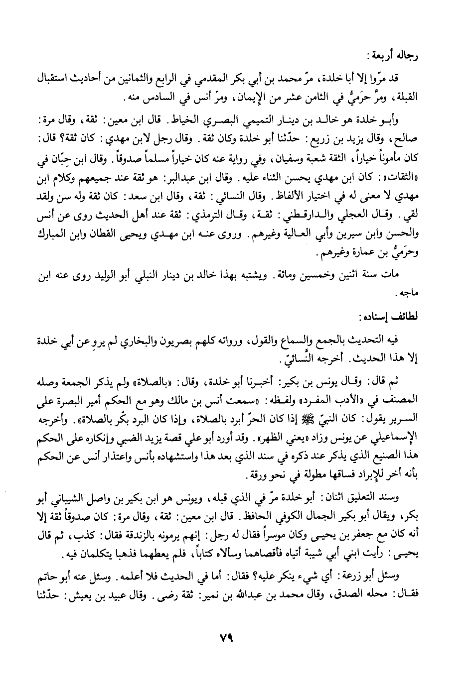 قد مرّوا إلا أبا خلدة، مرّ محمد بن أبي بكر المقدمي في الرابع والثمانين من أحاديث استقبال القبلة، ومرَّ حرَميُّ في الثامن عشر من الإِيمان، ومرّ أنس في السادس منه.
