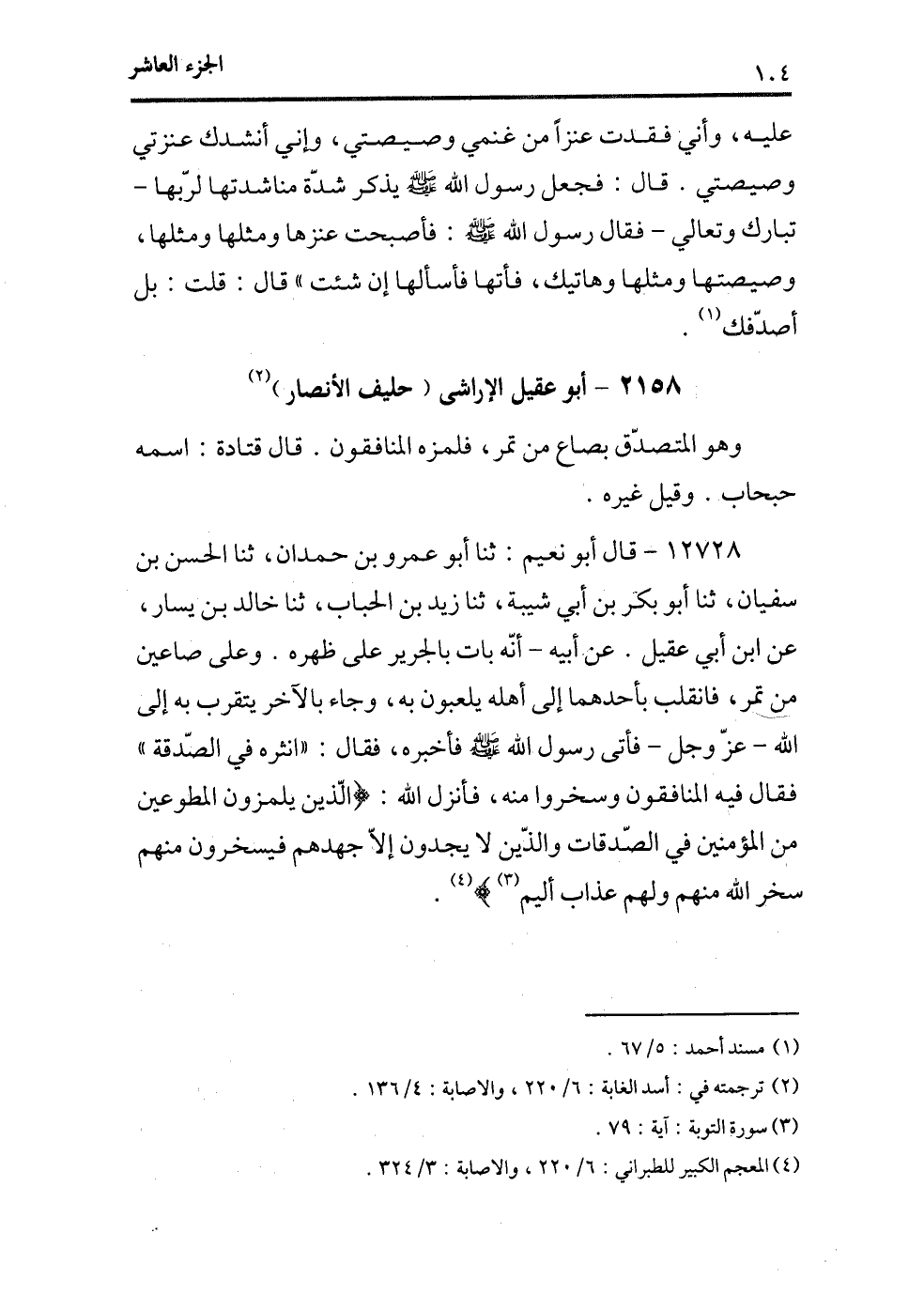 (¬3) المعجم الكبير للطبراني، 6/220؛ والإصابة، 3/324.