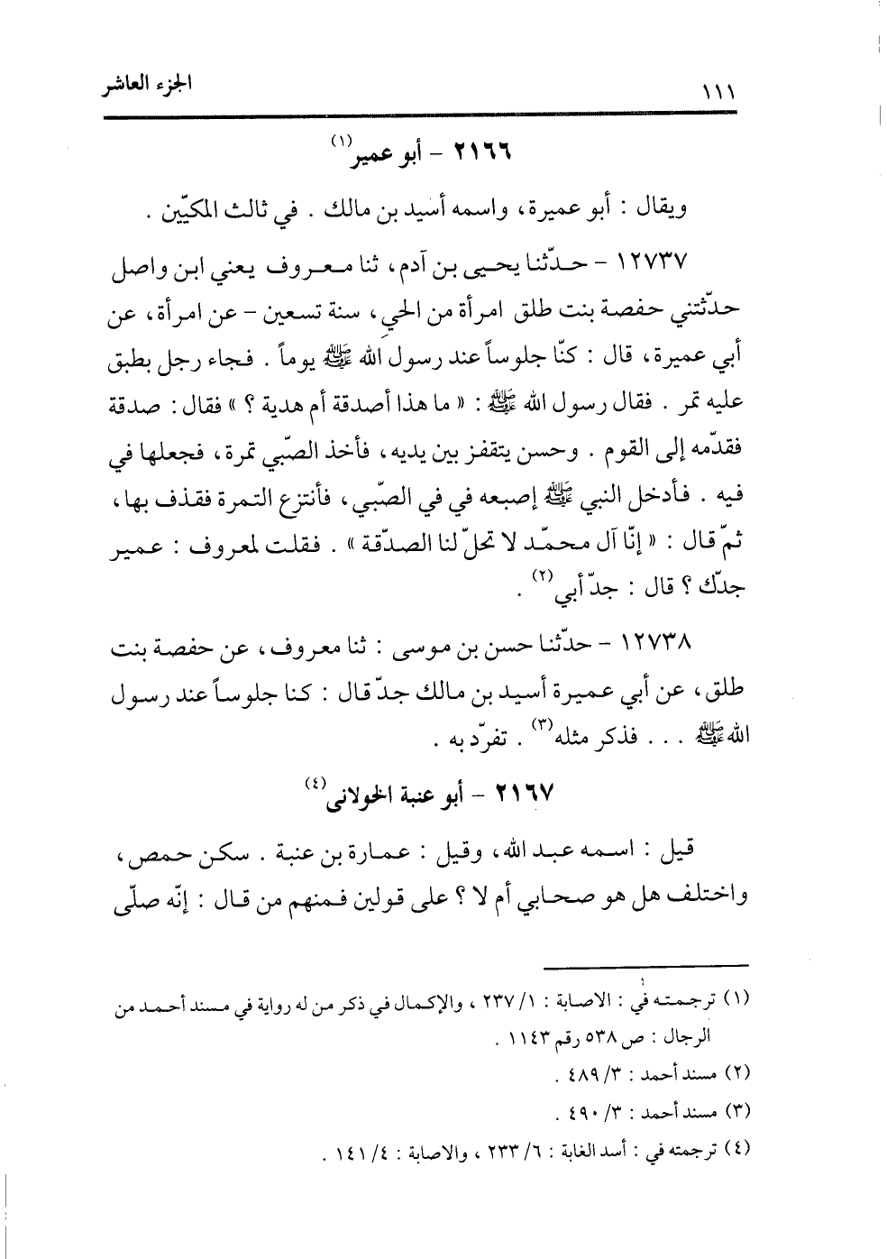 (¬1) ترجمته في: الإصابة، 1/237؛ والإكمال في ذكر من له رواية في مسند أحمد من الرجال، ص538 رقم1143.