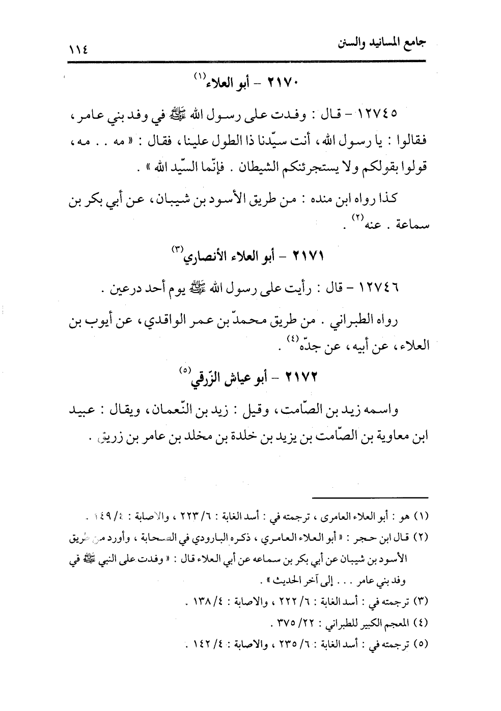 (¬1) هو: أبو العلاء العامري، ترجمته في: أسد الغابة، 6/223؛ والإصابة، 4/149.