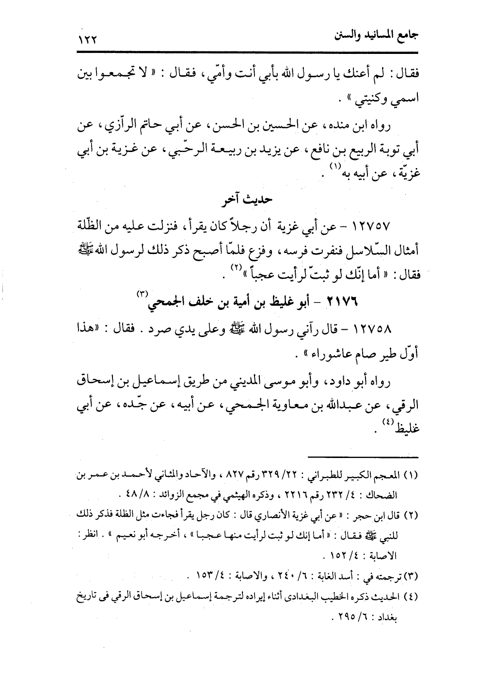 (¬1) المعجم الكبير للطبراني، 22/329 رقم827؛ والآحاد والمثاني لأحمد بن عمر بن الضحاك، 4/232 رقم2216؛ وذكره الهيثمي في مجمع الزوائد، 8/48.