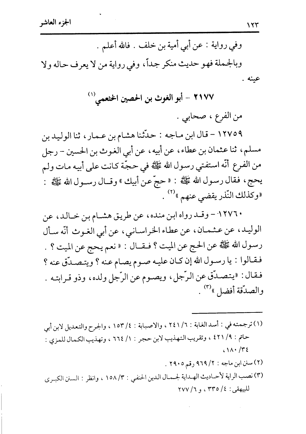 12760 - وقد رواه ابن منده، من طريق هشام بن خالد، عن الوليد، عن عثمان، عن عطاء الخراساني، عن أبي الغوث أنه سأل رسول الله - صلى الله عليه وسلم - عن الحج عن الميت؟ فقال: ((نعم يحج عن الميت؟. فقالوا: يارسول الله إن كان عليه صوم يصام عنه؟ ويتصدق عنه؟ فقال: ((يتصدق عن الرجل، ويصوم عن الرجل ولده، وذو قرابته، والصدقة أفضل)) (¬3) .