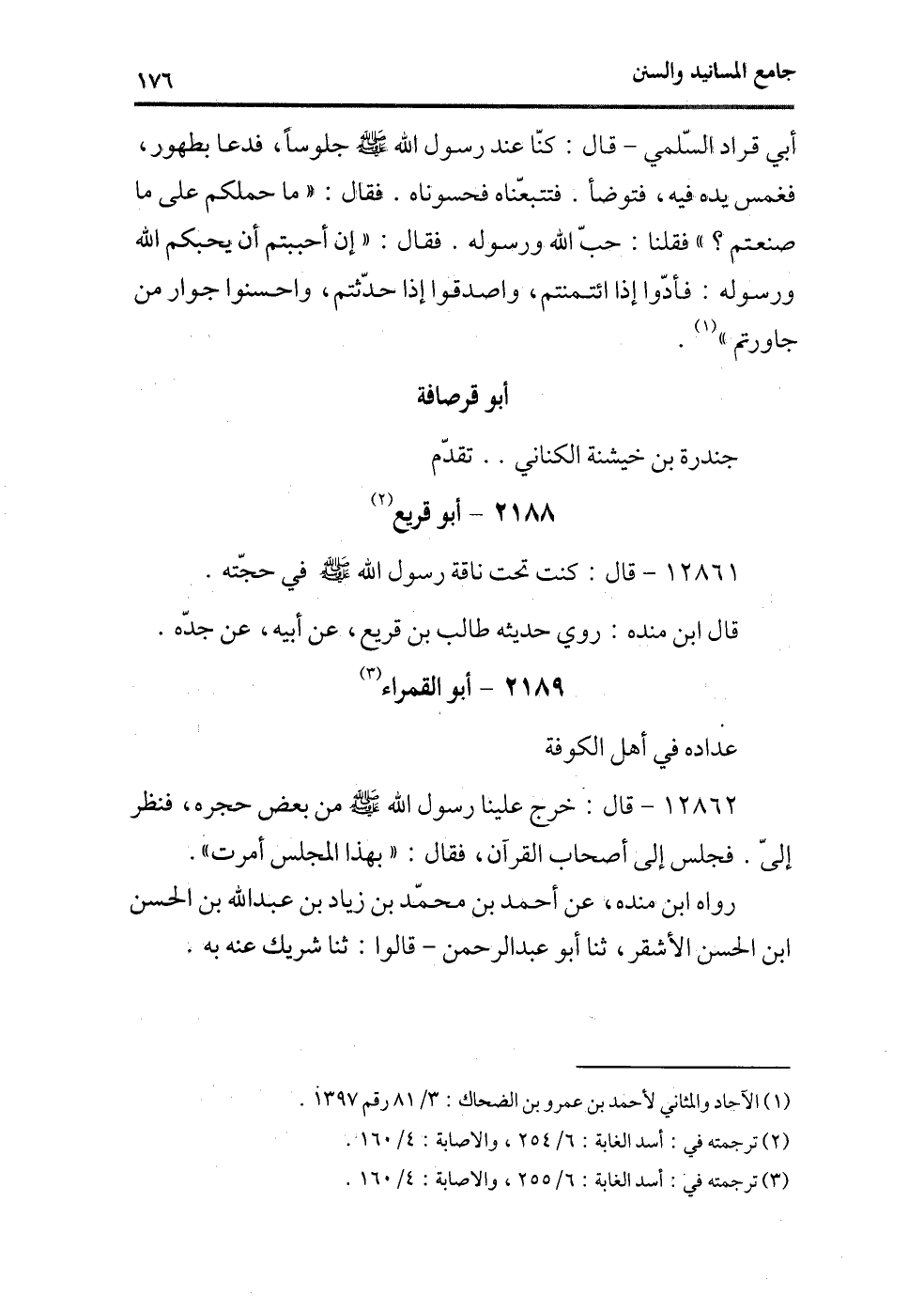 (¬1) الآحاد والمثاني لأحمد بن عمرو بن الضحاك، 3/81 رقم1397.