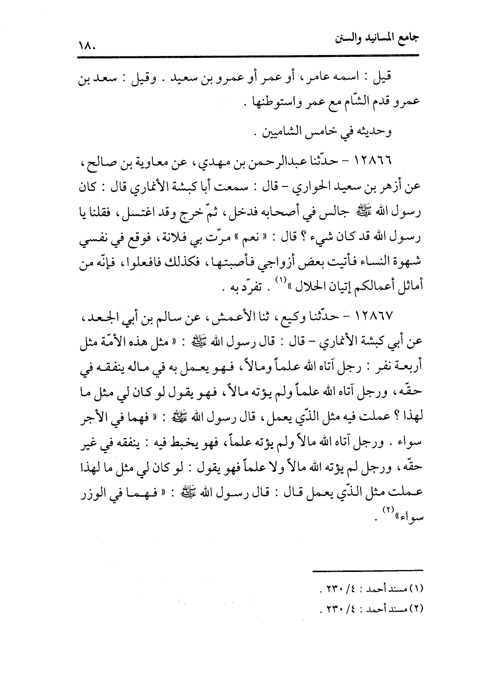 (¬2) مسند أحمد، 4/230.