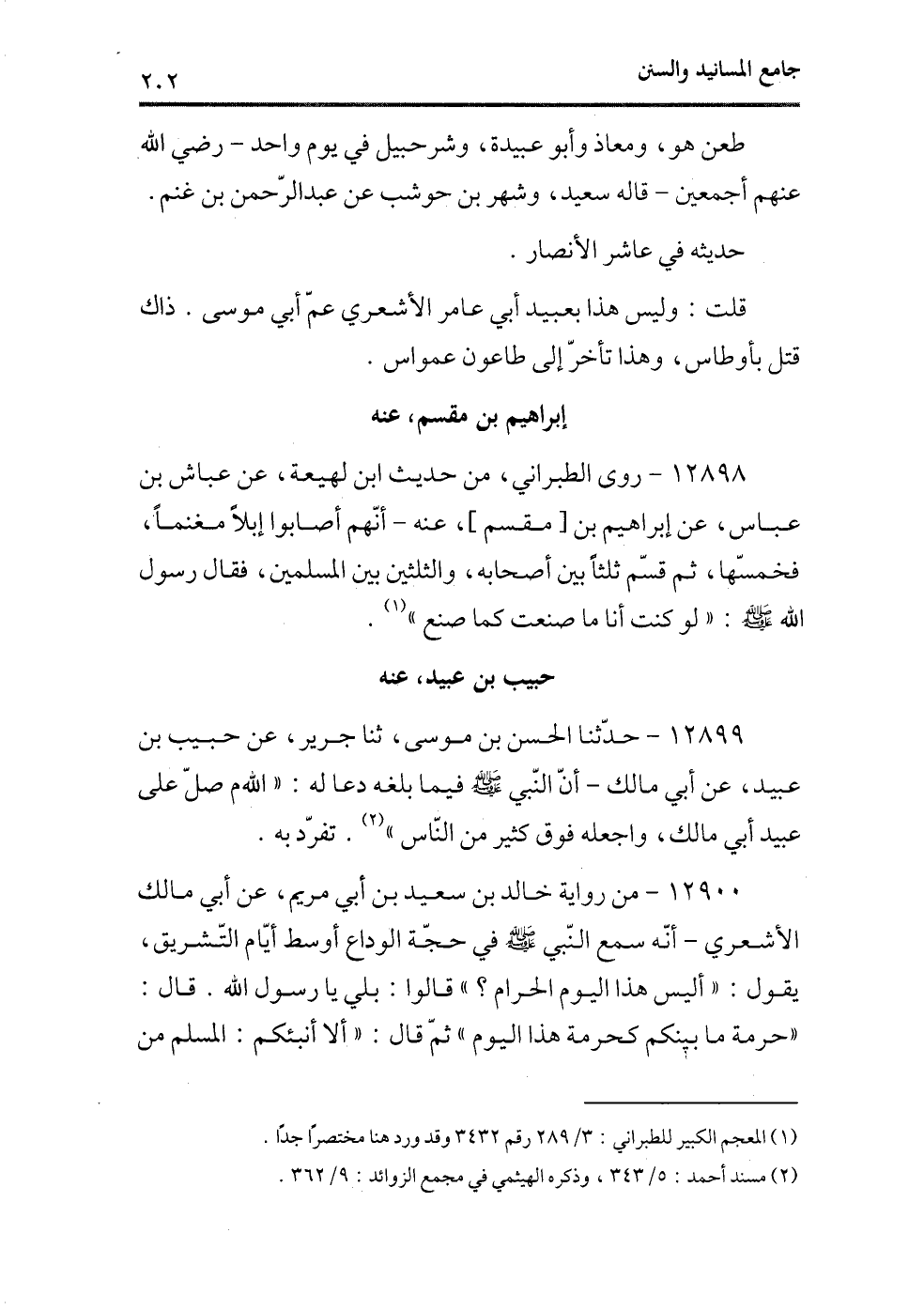 (¬2) () ... مسند أحمد، 5/343، وذكره الهيثمي في مجمع الزوائد، 9/362.