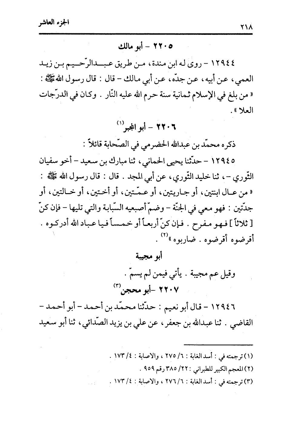 (¬2) المعجم الكبير للطبراني، 22/385 رقم959.