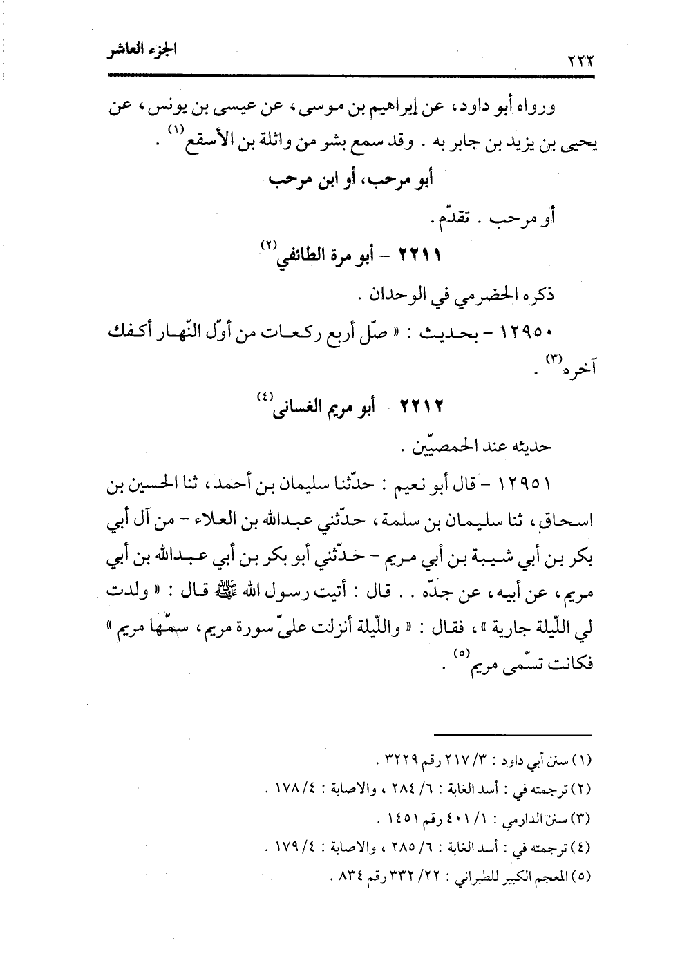 (¬4) المعجم الكبير للطبراني، 22/332 رقم834.