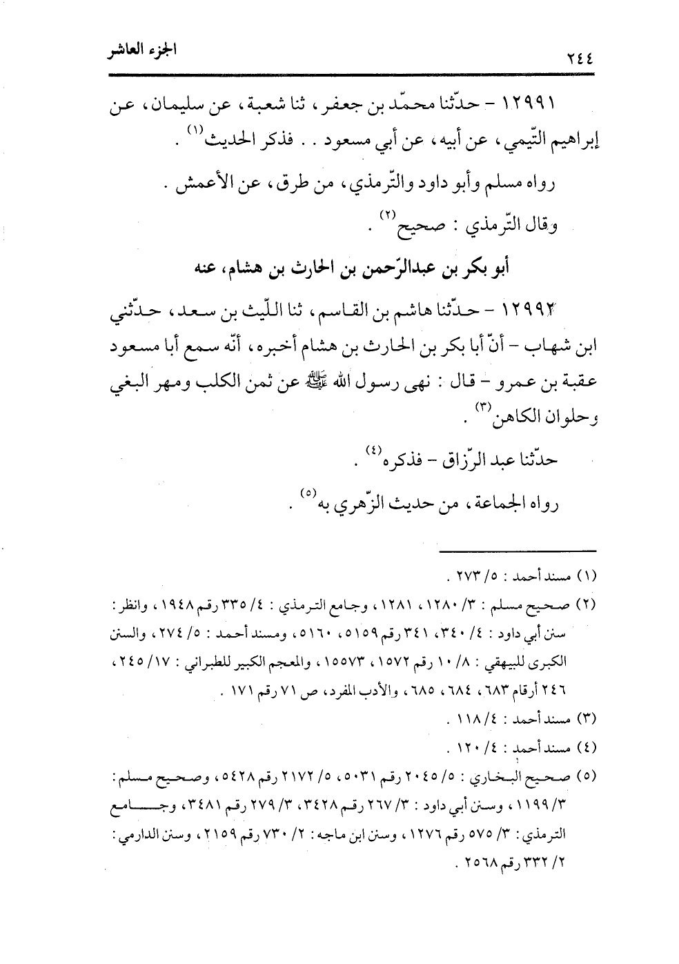 (¬5) صحيح البخاري، 5/2045 رقم5031، 5/2172 رقم5428؛ وصحيح مسلم: 3/1199؛ وسنن أبي داود، 3/267 رقم3428، 3/279 رقم3481؛ وجامع الترمذي، 3/575 رقم1276؛ وسنن ابن ماجة، 2/730 رقم2159؛ وسنن الدارمي، 2/332 رقم2568.