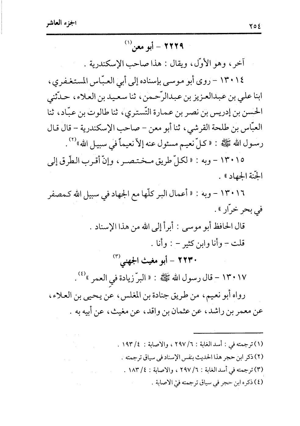 13014 - روى أبو موسى بإسناده إلى أبي العباس المستغفري، ابنا علي بن عبد العزيز بن عبد الرحمن، ثنا سعيد بن العلاء، حدثني الحسن بن إدريس بن نصر بن عمارة التستري، ثنا طالوت بن عباد، ثنا العباس بن طلحة القرشي، ثنا أبو معن