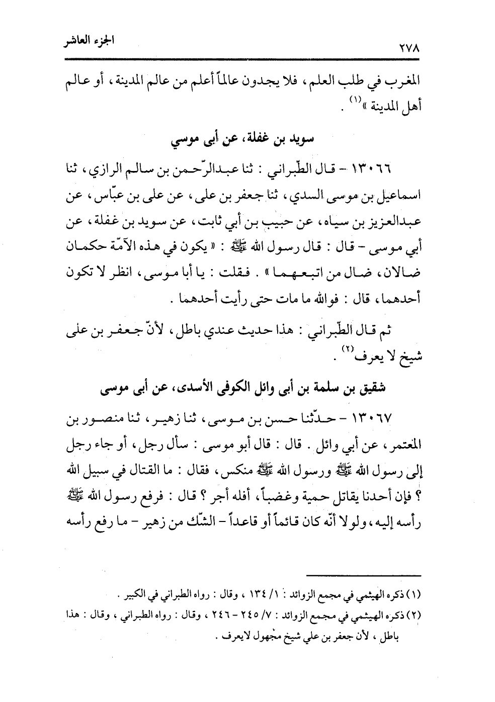 (¬1) ذكره الهيثمي في مجمع الزوائد، 7/245-246، وقال: رواه الطبرانين وقال: هذا باطل، لأن جعفر بن علي شيخ مجهول لايعرف.