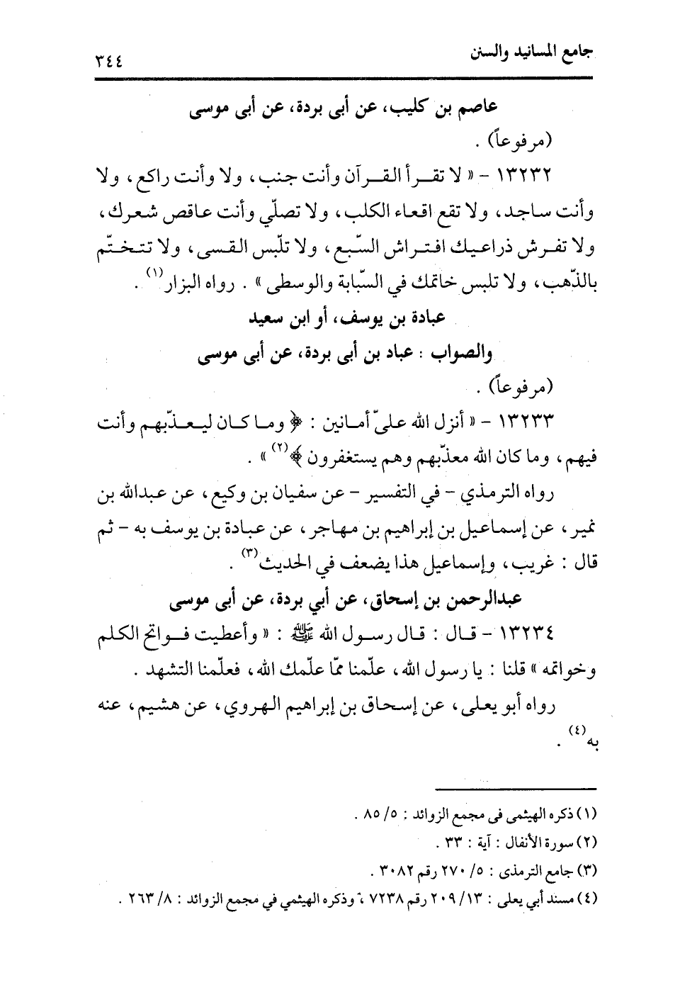 (¬4) مسند أبي يعلى، 13/209 رقم7238؛ وذكره الهيثمي في مجمع الزوائد، 8/263.