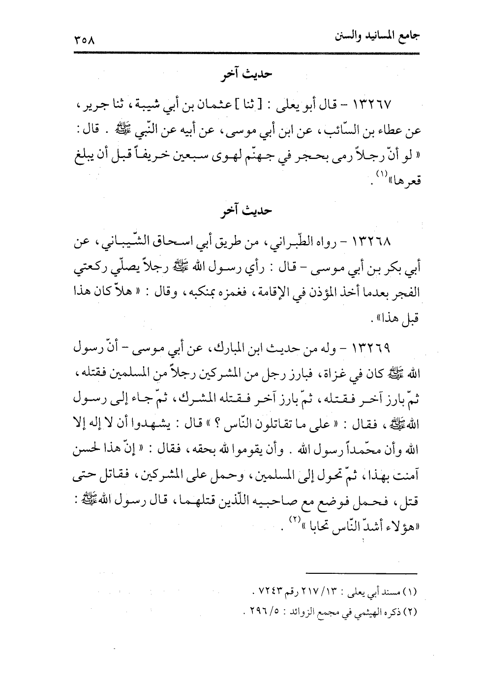 (¬1) مسند أبي يعلى، 13/217 رقم 7243.