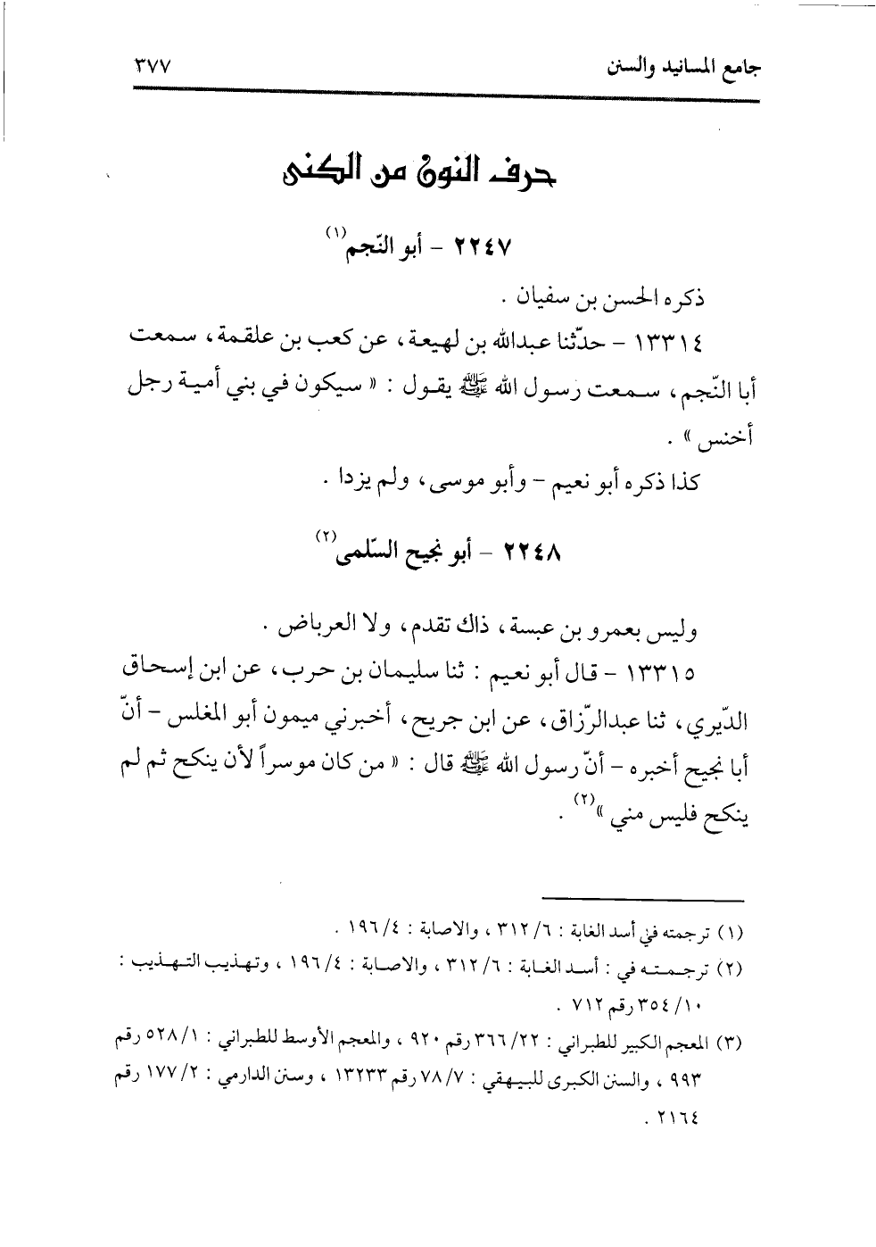 (¬3) المعجم الكبير للطبراني، 22/366 رقم920؛ والمعجم الأوسط للطبراني، 1/528 رقم993؛ والسنن الكبرى للبيهقي، 7/78 رقم 13233؛ وسنن الدارمي، 2/177 رقم2164.