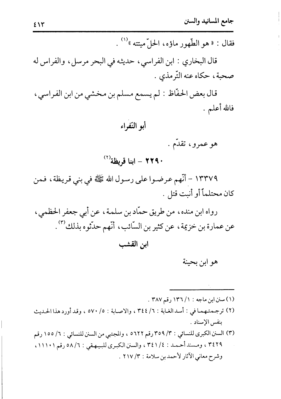 (¬2) السنن الكبرى للنسائي، 3/359 رقم5622؛ والمجتبى من السنن للنسائي، 6/155 رقم 3429؛ ومسند أحمد، 4/341؛ والسنن الكبرى للبيقهي، 6/58 رقم 11101؛ وشرح معاني الآثار لأحمد بن سلامة، 3/217.