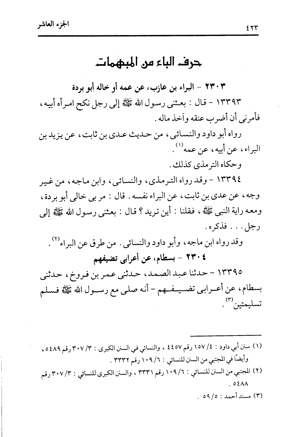 (¬2) المجتبى من السنن للنسائي، 6/109 رقم3331؛ والسنن الكبرى للنسائي، 3/307 رقم 5488.