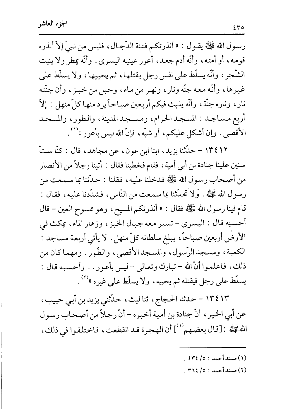 (¬1) مسند أحمد، 5/434.