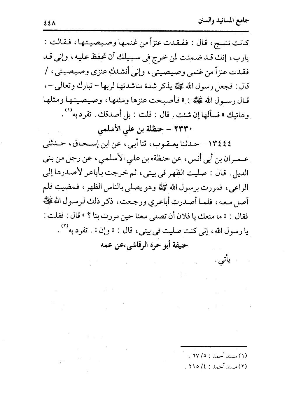 13444 - حدثنا يعقوب، ثنا أبي، عن ابن إسحاق، حدثني عمران بن أبي أنس، عن حنظلة بن علي الأسلمي، عن رجل من بني الديل. قال: صليت الظهر في بيتي، ثم خرجت بأباعر لأصدرها إلى الراعي، فمررت برسول الله - صلى الله عليه وسلم - وهو يصلي بالناس الظهر، فمضيت فلم أصل معه، فلما أصدرت أباعري ورجعت، ذكر ذلك لرسول الله - صلى الله عليه وسلم - فقال: ((مامنعك يافلان أن تصلى معنا حين مررت بنا؟)) قال: فقلت: يارسول الله، إني كنت صليت في بيتي، قال: ((وإن)) (¬1) . تفرد به.