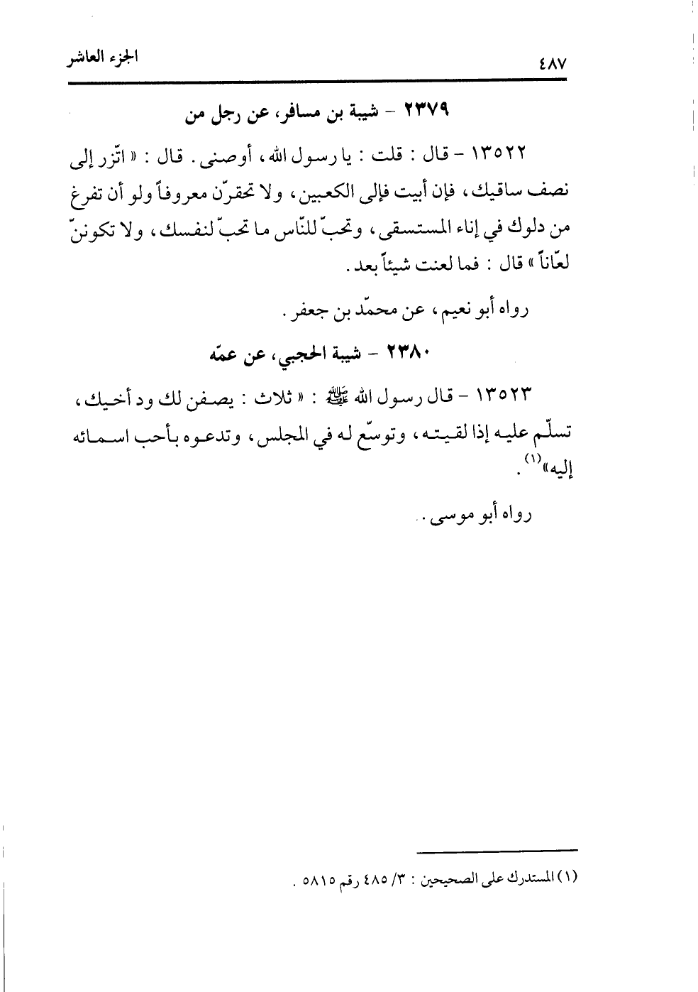 (¬1) المستدرك على الصحيحين، 3/485 رقم5815.