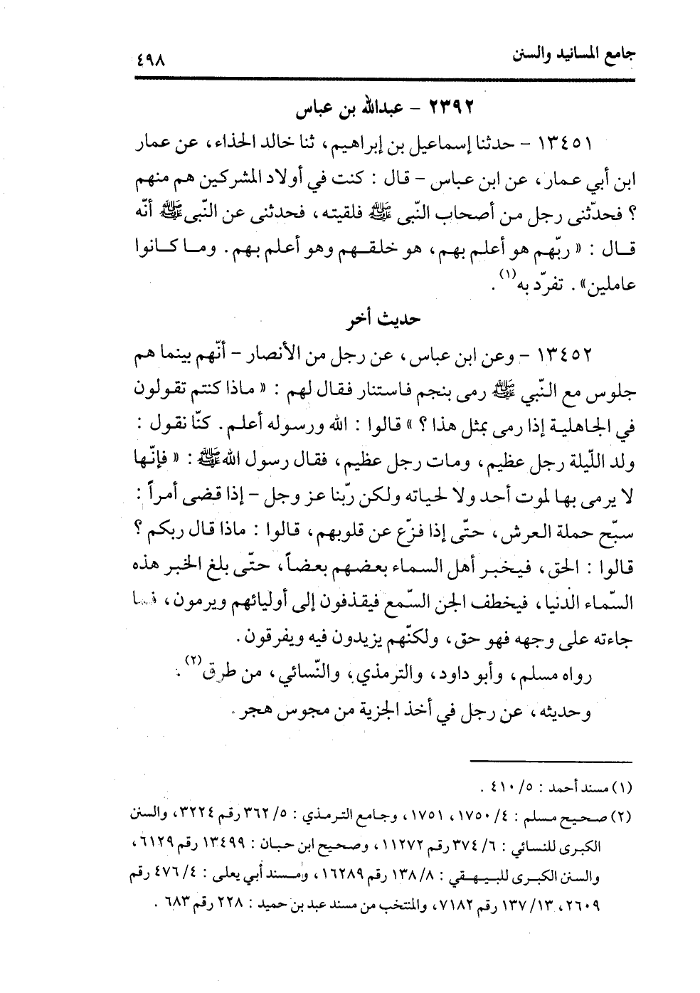 (¬2) صحيح مسلم، 4/1750، 1751؛ وجامع الترمذي، 5/362 رقم3224؛ والسنن الكبرى للنسائي، 6/374 رقم11272؛ وصحيح ابن حبان، 13499 رقم6129؛ والسنن الكبرى للبيهقي، 8/138 رقم16289؛ ومسند أبي يعلى، 4/476 رقم 2609، 13/137 رقم 7182؛ والمنتخب من مسند عبد بن حميد، 228 رقم683.