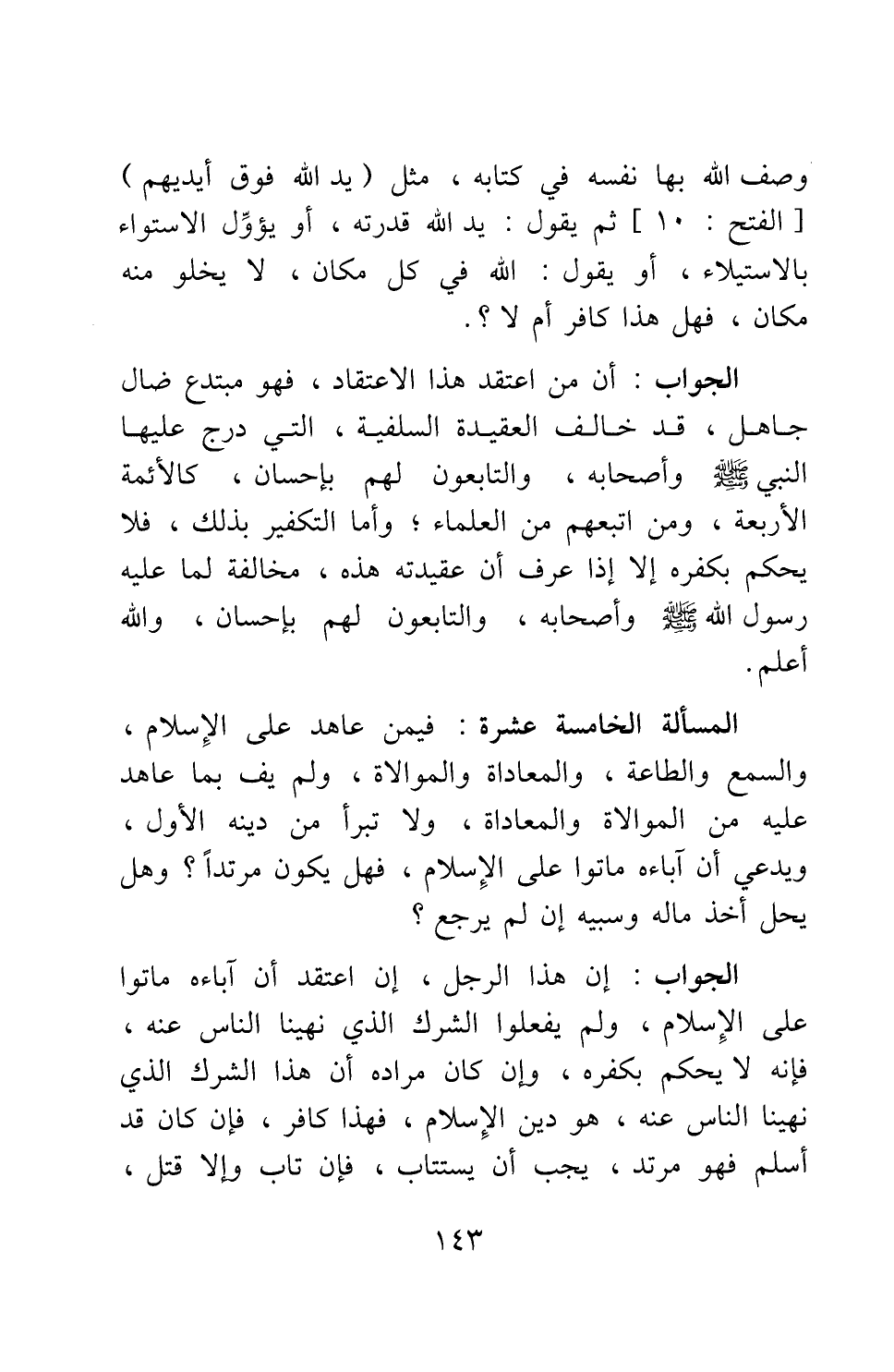 كتاب الدرر السنية في الأجوبة النجدية (اسم الجزء: 10)