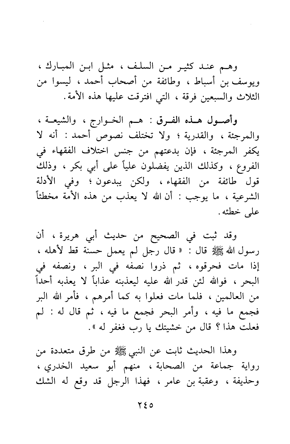 وأصول هذه الفرق هم الخوارج، والشيعة والمرجئة، والقدرية ; ولا تختلف نصوص أحمد أنه لا يكفر المرجئة، فإن بدعتهم من جنس اختلاف الفقهاء في الفروع، وكذلك الذين يفضلون عليا على أبي بكر، وذلك قول طائفة من الفقهاء، ولكن يبدعون ; وفي الأدلة الشرعية، ما يوجب أن الله لا يعذب من هذه الأمة مخطئا على خطئه.