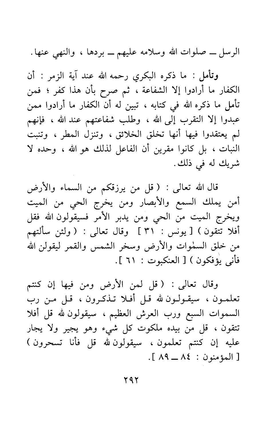 قال الله تعالى: {قُلْ مَنْ يَرْزُقُكُمْ مِنَ السَّمَاءِ وَالْأَرْضِ أَمَّنْ يَمْلِكُ السَّمْعَ وَالْأَبْصَارَ وَمَنْ يُخْرِجُ الْحَيَّ مِنَ الْمَيِّتِ وَيُخْرِجُ الْمَيِّتَ مِنَ الْحَيِّ وَمَنْ يُدَبِّرُ الْأَمْرَ فَسَيَقُولُونَ اللَّهُ فَقُلْ أَفَلا تَتَّقُونَ} 1، وقال تعالى: {وَلَئِنْ سَأَلْتَهُمْ مَنْ خَلَقَ السَّمَاوَاتِ وَالْأَرْضَ وَسَخَّرَ الشَّمْسَ وَالْقَمَرَ لَيَقُولُنَّ اللَّهُ فَأَنَّى يُؤْفَكُونَ} 2،