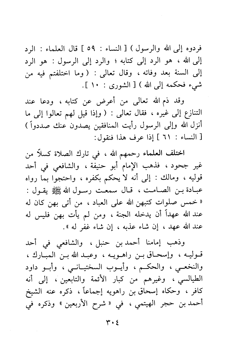 وقد ذم الله تعالى من أعرض عن كتابه، ودعا عند التنازع إلى غيره، فقال تعالى: {وَإِذَا قِيلَ لَهُمْ تَعَالَوْا إِلَى مَا أَنْزَلَ اللَّهُ وَإِلَى الرَّسُولِ رَأَيْتَ الْمُنَافِقِينَ يَصُدُّونَ عَنْكَ صُدُوداً} 3. إذا عرف هذا فنقول: