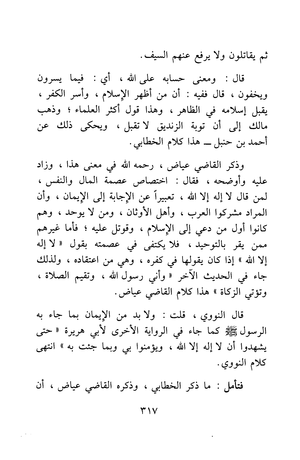 فتأمل ما ذكر الخطابي، وذكره القاضي عياض، أن